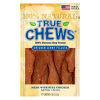 True Chews Chicken Jerky Fillets For Dogs are all natural, high protein treats that dogs will love. These American-made real chicken jerky fillets are rawhide-free and contain no fillers. They are naturally delicious dog treats you can feel good about giving.