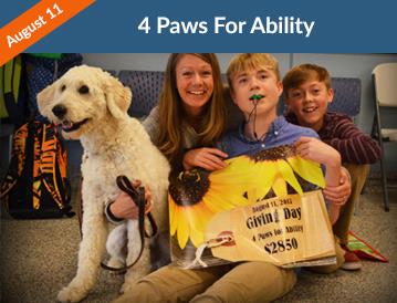 4 Paws for Ability is the embodiment of Karen's vision - a nonprofit organization that breeds, socializes, trains, and places service dogs with children and veterans. Since its inception in 1998, 4 Paws has paired over 1,100 trained service dogs to people living with a variety of disabilities. With a team of 75 employees and over 600 volunteers, 4 Paws now places over 100 dogs per year. 4 Paws dogs (and the humans they love and serve) can be found in almost all 50 states as well as Australia, Canada, Germany, Japan, Mexico, New Zealand, and Switzerland. Dogs trained through 4 Paws meet the criteria for 'service animals' as defined by the Americans with Disabilities Act (ADA).