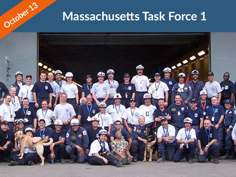 Massachusetts Task Force 1 ( MA-TF 1) Urban Search and Rescue Team (US&R) is located in Beverly, Massachusetts. Urban Search and Rescue teams are comprised of Police, Fire, EMS and Civilians (62 total people when deployed) and respond to major disasters under a contract with the Federal Emergency Management Agency (FEMA). Currently there are 150 people on the MA-TF 1 team. Sponsored by the City of Beverly, Massachusetts, MA-TF 1 maintains the heritage established by the Lexington Minutemen at the onset of the American Revolution: the spirit of cooperation and volunteerism that sustains the vitality of a democratic society as well as the infrastructure of emergency response. As Hurricane Sandy turned into Superstorm Sandy, MA-TF 1 was activated by the Commonwealth of Massachusetts to stand at the ready as a state asset.