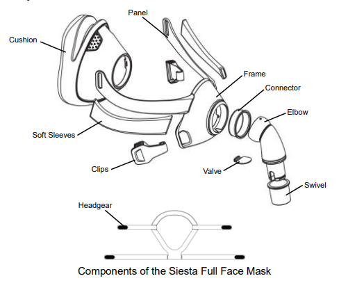 Siesta Full Face CPAP Mask Components