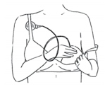3. Connect the pump by putting the cannula (tube) into the marked valve opening on the side of the breast form. Open the valve inlet by squeezing thumb & index finger together.