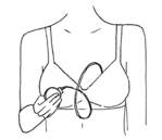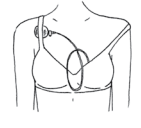 2. Place the pump under the bra strap of the opposite side, so that both hands are free. Slide the bra strap down on the breast form side.