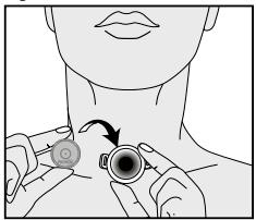 Step 2 - To speak, press the top lid of the Provox XtraHME Cassette down with a finger