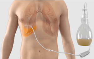 PleurX Drainage Kit includes a drainage catheter and drainage bottles that collect fluid. The catheter is inserted as a simple outpatient procedure in the abdomen for draining malignant ascites or in the chest for pleural effusions. The cathet