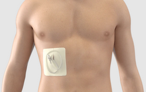 - End of the catheter remains on the outside of the body, covered by a thin protective dressing when not in use