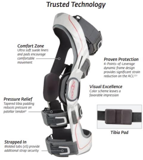 - Four Points of Leverage dynamic frame design significantly reduces ACL strain