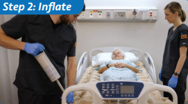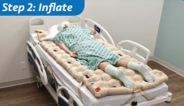 Prior to repositioning the patient from supine to prone, deflate the waffle pad for bed and ensure the straps are looped under the corners. Follow your facility protocol for placing a patient into the prone position.