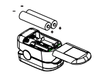 - Remove the battery cover and insert the two AAA batteries following polarity markings indicated inside of the battery compartment,then reposition the cover.