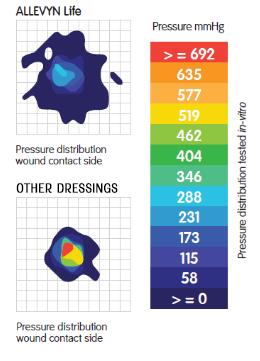 A pressure redistribution comparison study measured the pressure transferred through the dressings when the pressure was applied to the dressing surface using a probe. 1000 mmHg was applied to both the dressings.